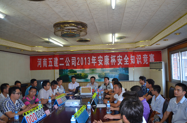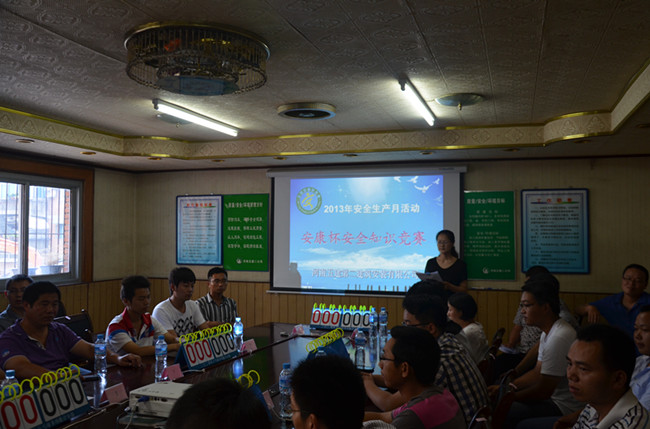 為響應全國“安全生產(chǎn)月”活動精神,6月19日下午,公司在二樓會議室舉辦了安全生產(chǎn)知識競賽。公司黨委書記、工會主席朱明友、副總經(jīng)理吳建功及各項目部代表共有50余人參加了此次知識競賽,同時,公司還邀請了市總工會生產(chǎn)部劉明俊部長為此次競賽活動做指導。