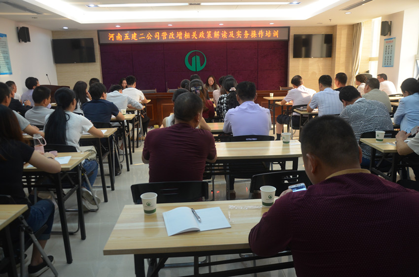 9月11日,公司舉辦了營改增相關政策解讀及實務操作專業培訓。此次培訓,公司特邀信陽市興華稅務師事務所所長、注冊稅務師章雯老師進行專題講解,公司項目經理、項目財務人員及機關部室相關人員近百人參加了培訓。