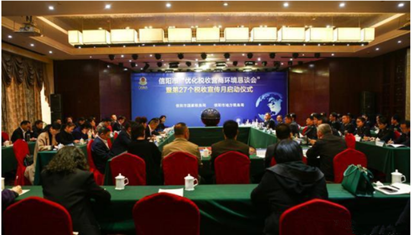 公司主要領導受邀參加信陽市“優化營商環境懇談會”暨第27個稅收宣傳月啟動儀式