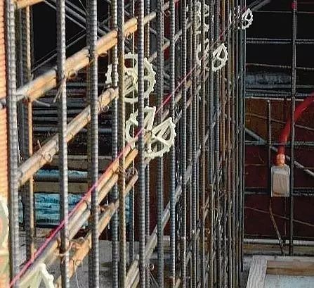 2、 底部采用水泥墊塊或碎大理石墊塊,側(cè)面采用塑料或其它墊塊,控制保護層厚度;