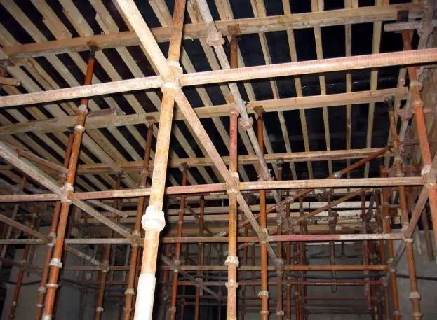 4、 支設(shè)立桿時,為防止把下層樓面混凝土壓傷,立桿底部必須墊方木墊塊;
