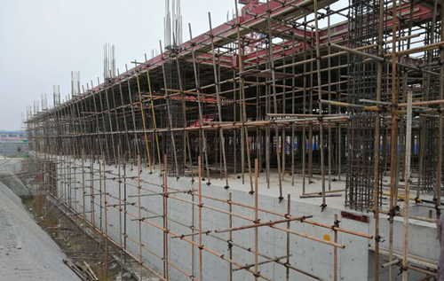 (2)調度指揮中心一層模板施工。已累計完成該項工作40%的工程量。
