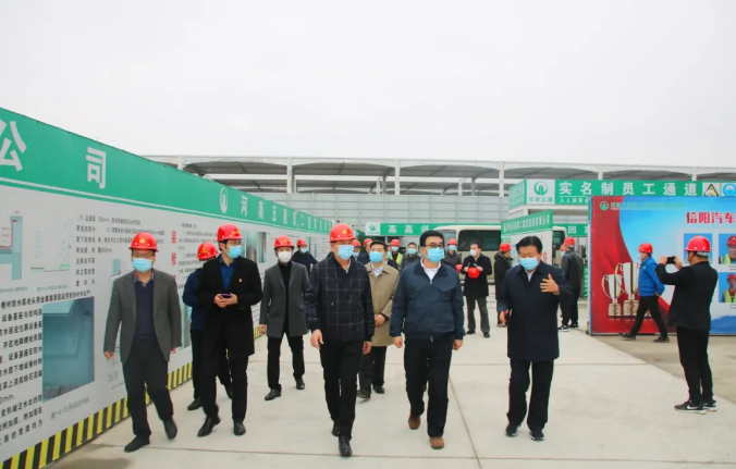 3月30日下午,公司在建項(xiàng)目信陽長(zhǎng)途汽車東站及配套設(shè)施用房項(xiàng)目再次迎來尊貴的客人,河南省人民政府副省長(zhǎng)何金平帶領(lǐng)省住建廳、商務(wù)廳等部門主要負(fù)責(zé)同志蒞臨項(xiàng)目現(xiàn)場(chǎng)調(diào)研疫情防控及復(fù)工復(fù)產(chǎn)情況;信陽市副市長(zhǎng)李正軍、住建局局長(zhǎng)張立英、商務(wù)局局長(zhǎng)郭珂、市場(chǎng)監(jiān)督管理局局長(zhǎng)孫云宏等領(lǐng)導(dǎo)陪同調(diào)研,高新區(qū)黨委書記、管委會(huì)主任熊開程、副主任陳偉、信運(yùn)集團(tuán)董事長(zhǎng)阮中杰、公司黨委書記、董事長(zhǎng)吳萬仁參加了調(diào)研活動(dòng)。