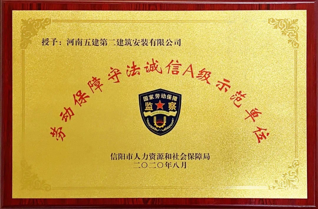 近日,信陽市人力資源和社會保障局公布了《關(guān)于2020年度用人單位勞動保障守法誠信等級評價結(jié)果的通知》,公司再次被評為信陽市勞動保障守法誠信A級示范單位,這是公司連續(xù)多年獲評這一榮譽。