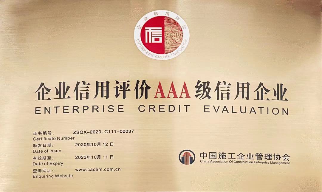 中國(guó)施工企業(yè)管理協(xié)會(huì)AAA級(jí)信用等級(jí)證書(shū)