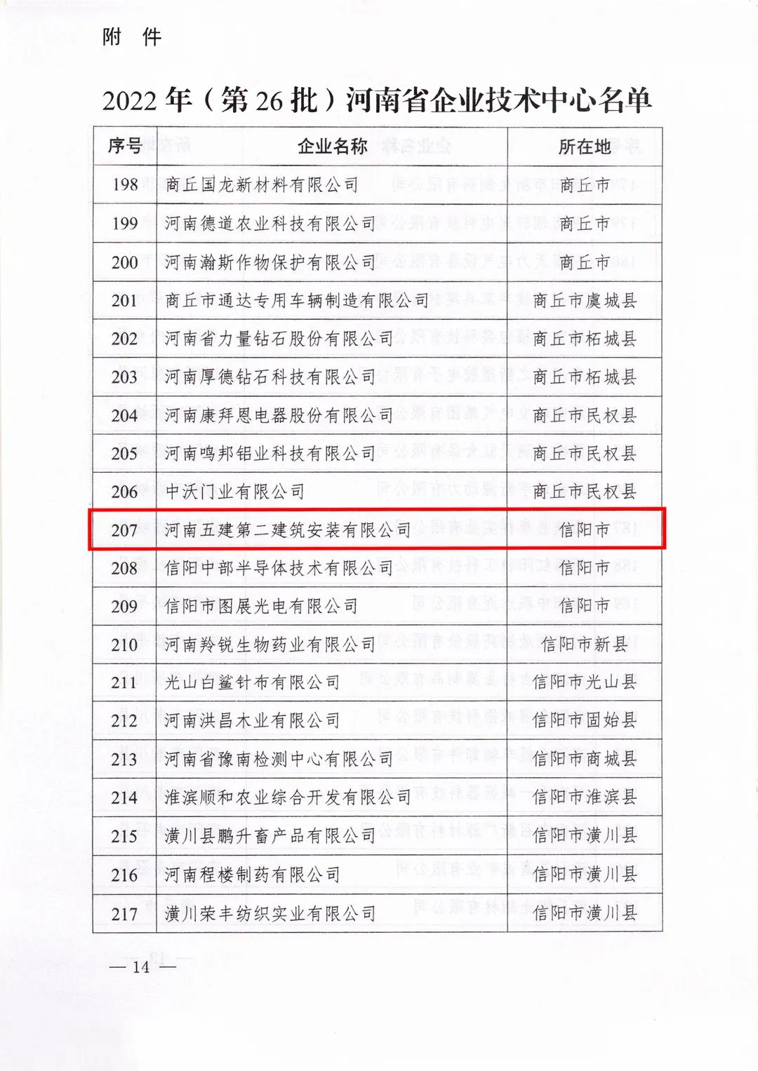 喜訊!河南五建二公司獲批河南省企業技術中心